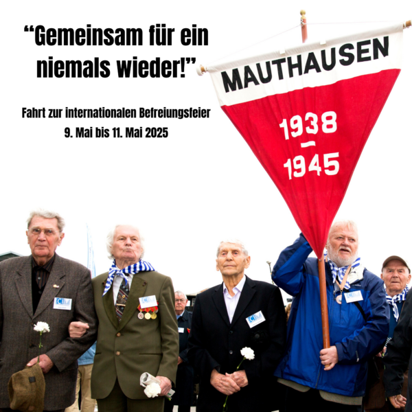 Einladung zum Besuch der KZ-Gedenkstätte Mauthausen und der internationalen Befreiungsfeier. Das Schwerpunktthema der diesjährigen Gedenk- und Befreiungsfeiern 2025 in Österreich lautet “Gemeinsam für ein niemals wieder!”