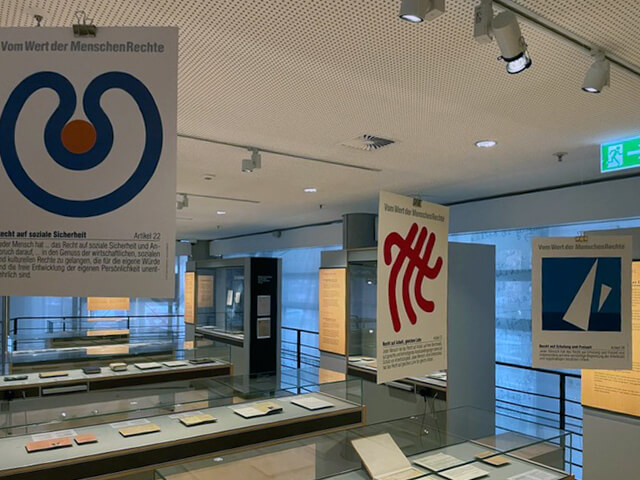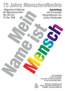 Wir realisieren Ausstellungen – auch an sehr ungewöhnlichen Orten, um das Thema Demokratie und Menschenrechte präsent zu halten. Die Ausstellungen bestehen aus 32 vierfarbigen Einzeltafeln DIN A1 des Kölner/Dresdner Grafikers und Zeichensteller Jochen Stankowski mit den Kerntexten der 30 Artikel der Menschenrechte, einem Titelplakat und einer Präsentation aller 30 Artikel auf einem Plakat.