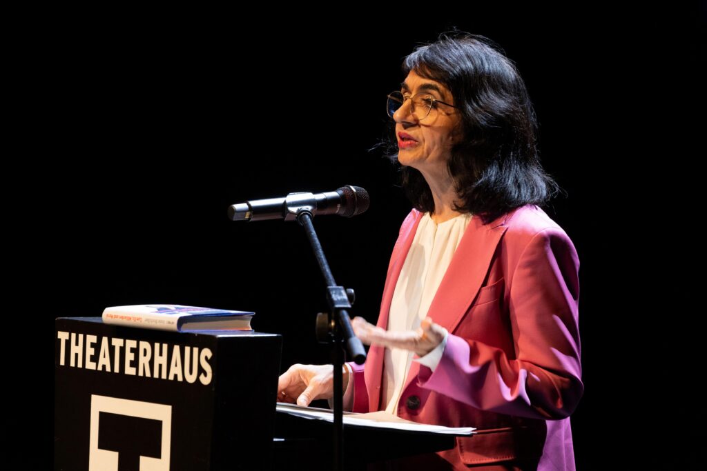 Muhterem Aras, Präsidentin des Landtags von Baden-Württemberg, dankte Fridays for Future in ihrer Laudatio für ihr Engagement und rief die Jugendlichen dazu auf, politisch wach zu bleiben.